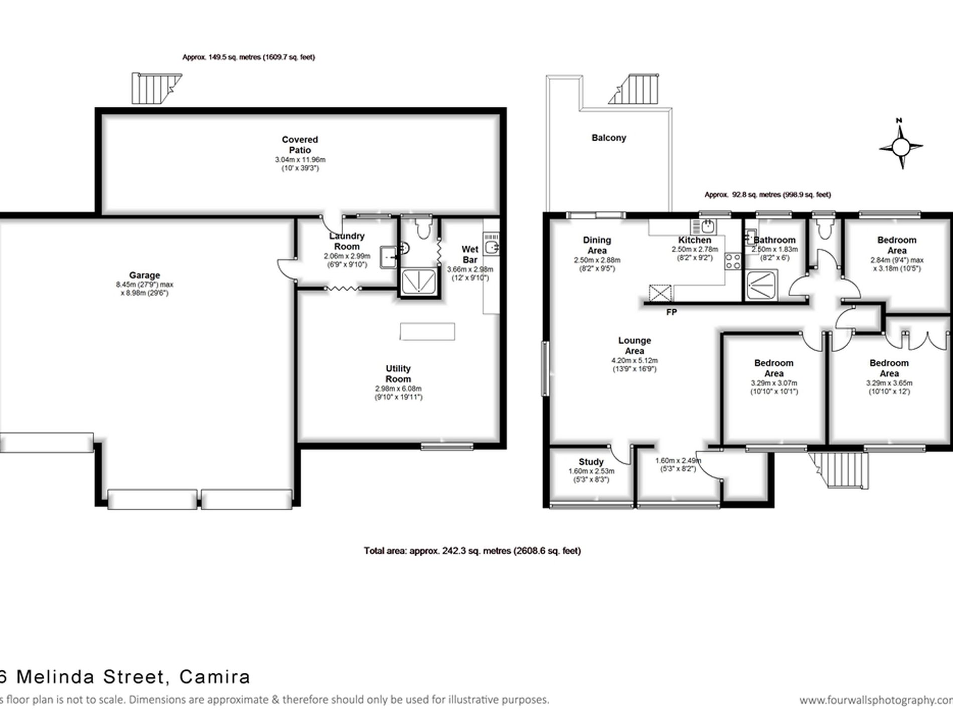 • 3 bedrooms up plus a separate study/4th room.